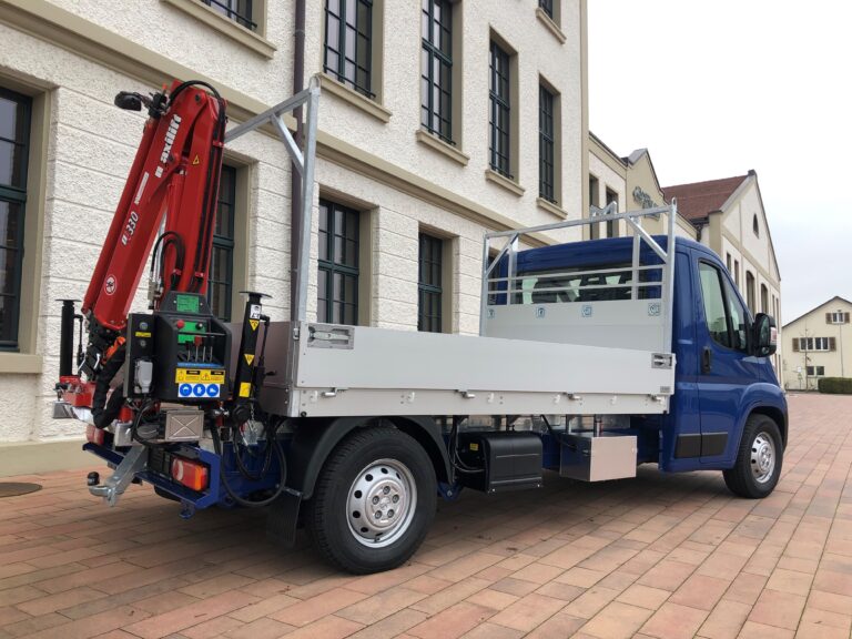 Für das sichere Transportieren mittelschwerer und grossvolumiger Waren oder auch Gegenstände fertigen wir massgeschneiderte Koffer- und Kastenaufbauten mit und ohne Hebebühne für kleine Transporter an. Dabei sind Nutzlasten von bis zu 1’000 kg sowie spezielle Ausstattungsoptionen wie zum Beispiel eine Anhängerkupplung – auch bei montierter Hebebühne – möglich. Zudem optimieren wir die Sicherheitsausstattung mit beispielsweise einem Rückfahrvideo-System mit 5″-Monitor im Fahrerhaus. Darüber hinaus haben wir auch Lösungen wie den 3D-Fahrerhaus-Dachspoiler für einen verbrauchseffizienteren Einsatz.